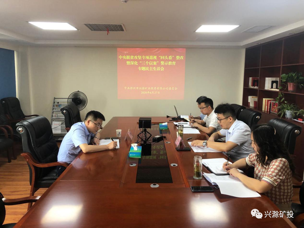 根據(jù)市委統(tǒng)一安排,6月27日上午,中共滁州市興滁礦業(yè)投資有限公司黨委召開(kāi)中央脫貧攻堅(jiān)專(zhuān)項(xiàng)巡視“回頭看”整改暨深化“三個(gè)以案”警示教育專(zhuān)題民主生活會(huì)。滁州市財(cái)政局(國(guó)資委)黨組書(shū)記、局長(zhǎng)(主任)貢植平到會(huì)全程指導(dǎo),市礦投公司黨委書(shū)記鄭冬冬主持會(huì)議。公司經(jīng)營(yíng)層黨外領(lǐng)導(dǎo)干部受邀列席會(huì)議。