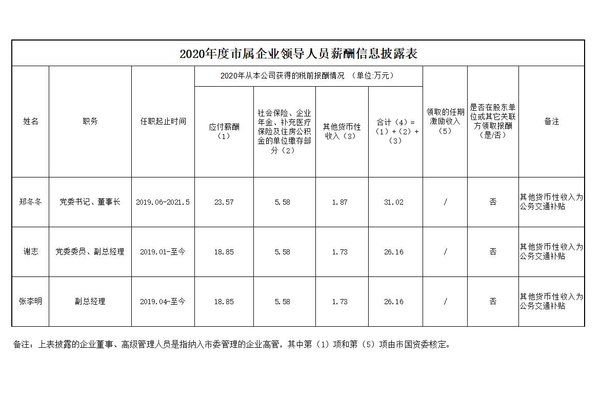2020年度滁州市興滁礦業(yè)投資有限公司領導人員薪酬信息披露表