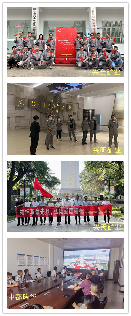 積極營造濃厚社會氛圍。集團公司利用電子屏幕開展“歡度國慶 祝福祖國”“喜迎二十大 奮進新征程”等主題宣傳。各子公司均組織開展各類主題活動:興全礦業(yè)開展“迎國慶 慶祝祖國華誕73周年”展板簽名活動,興明礦業(yè)赴大包干紀念館參觀學習,興天礦業(yè)在天長市烈士陵園向人民英雄敬獻花籃,中都瑞華組織集中觀看烈士紀念日向人民英雄敬獻花藍儀式。形式多樣的主題活動,為國慶佳節(jié)的到來營造歡樂祥和的節(jié)日氛圍,為黨的二十大勝利召開營造良好社會氛圍。